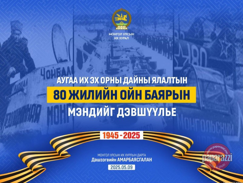 Хүн төрөлхтнийг заналхийлсэн фашизмын аюулаас чөлөөлсөн Их ялалтын 80 жилийн ойн баярын мэндийг ахмад дайчид, ард иргэддээ өргөн дэвшүүлье.