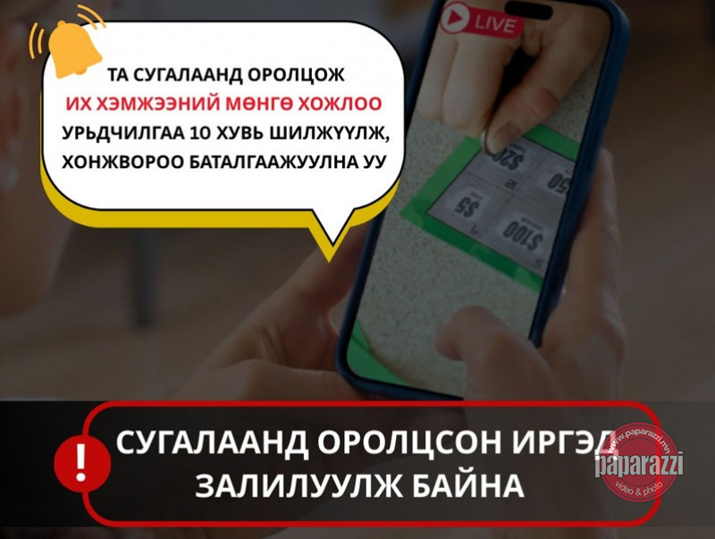 Иймд иргэд та бүхэн эрх бүхий байгууллагаас эд мөнгөний хонжворт сугалаа явуулах зөвшөөрөл авч, эрх олгогдсон сугалааны үйл ажиллагаанд оролцох мөн Та Хувь хүний албан татварын тухай хуульд заасанчлан хуулийн этгээдийн зохион байгуулсан хонжворт сугалаанд оролцож мөнгө хожсон тохиолдолд хонжворынхоо үнийн дүнгийн 40 хувийг татварт төлөх хуулийн зохицуулалттай байдаг гэдгийг сайтар анхаарч цахим орчинд аливаа хэлбэрээр явагдаж байгаа залилах гэмт хэргийн шинжтэй үйлдлийн талаар цагдаагийн байгууллагад мэдэгдэж, энэ төрлийн гэмт хэргээс урьдчилан сэргийлэхийг зөвлөж байна.