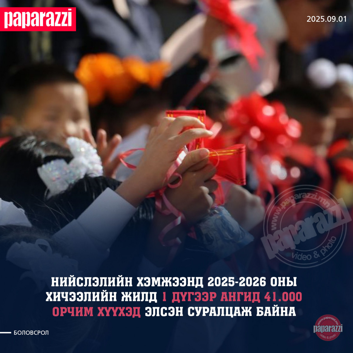 Үүнээс 1 дүгээр ангид 41.000 орчим хүүхэд элсэн суралцаж байна. Боловсрол, шинжлэх ухааны сайдын 2023 оны А/350, А/398 дугаар тушаалуудаар баталсан сургалтын төлөвлөгөөний дагуу Ерөнхий боловсролын сургуулийн сургалтын үйл ажиллагаа 34-37 долоо хоног үргэлжилнэ.