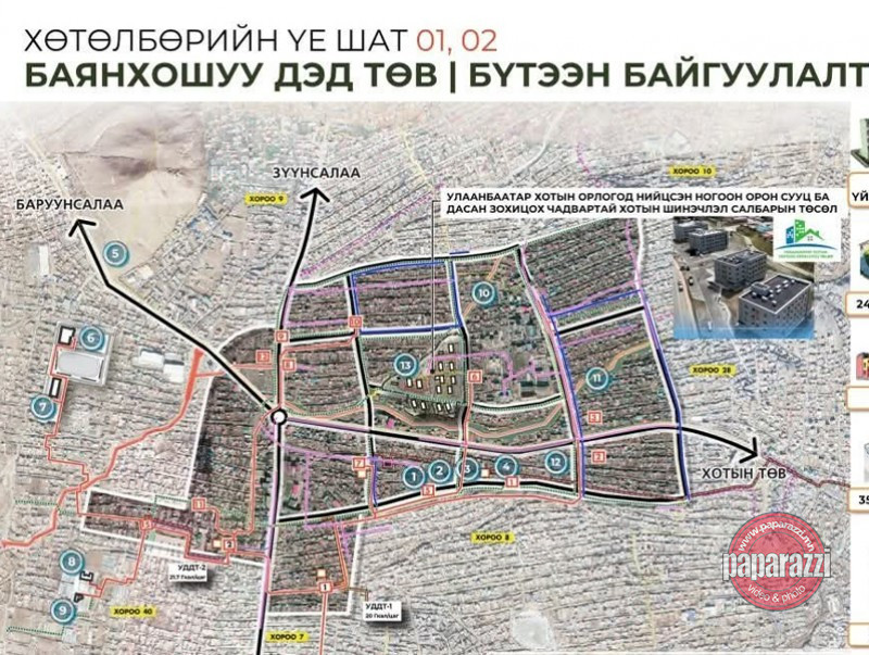 Баянхошуу дэд төв СХД-ийн 7, 8, 9, 10, 28, 40 дүгээр хорооны 162 га талбайд хэрэгжиж буй. Уг дэд төвд 30 мянган орчим хүн ам амьдрахаар төлөвлөж байгаа бөгөөд 6463 айлын орон сууц барих юм.