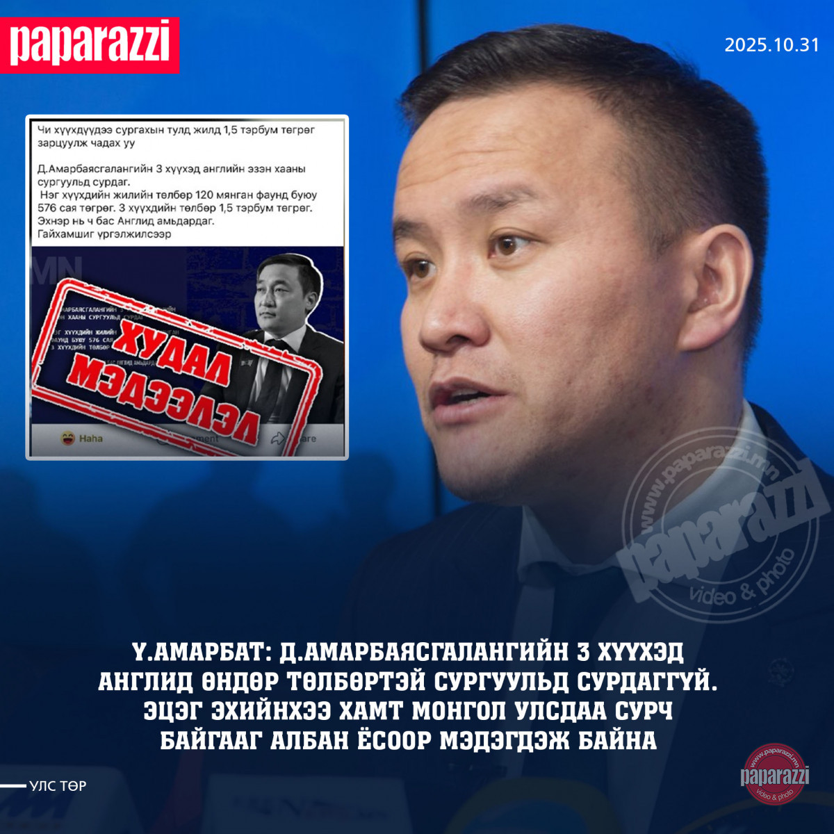 Ү.Амарбат: Д.Амарбаясгалангийн 3 хүүхэд Англид өндөр төлбөртэй сургуульд сурдаггүй. Эцэг эхийнхээ хамт Монгол улсдаа сурч байгааг албан ёсоор мэдэгдэж байна