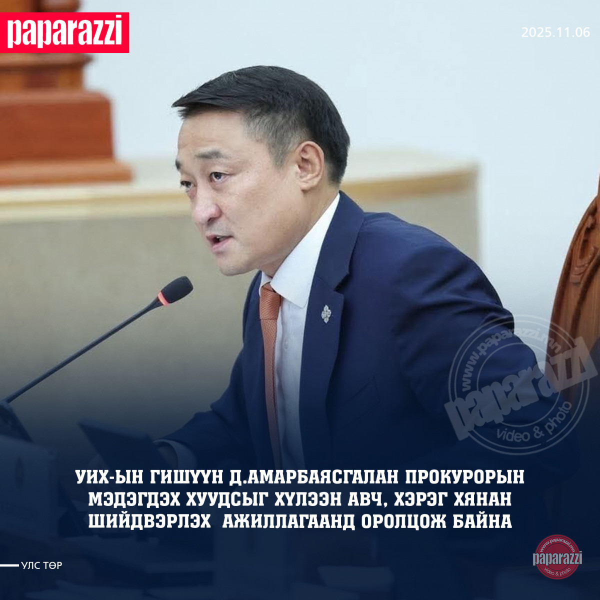 Түүнд улс төрийн зорилготойгоор хэрэг үүсгэсэн байх магадлалтай бөгөөд УИХ-ын гишүүн Д.Амарбаясгалан гэм буруугүйгээ нотлох баримтуудаа гаргаж, хэргийг хянан шийдвэрлэх ажиллагаанд саад учруулахгүй оролцоно гэдэг байр суурьтай байгаа бололтой.