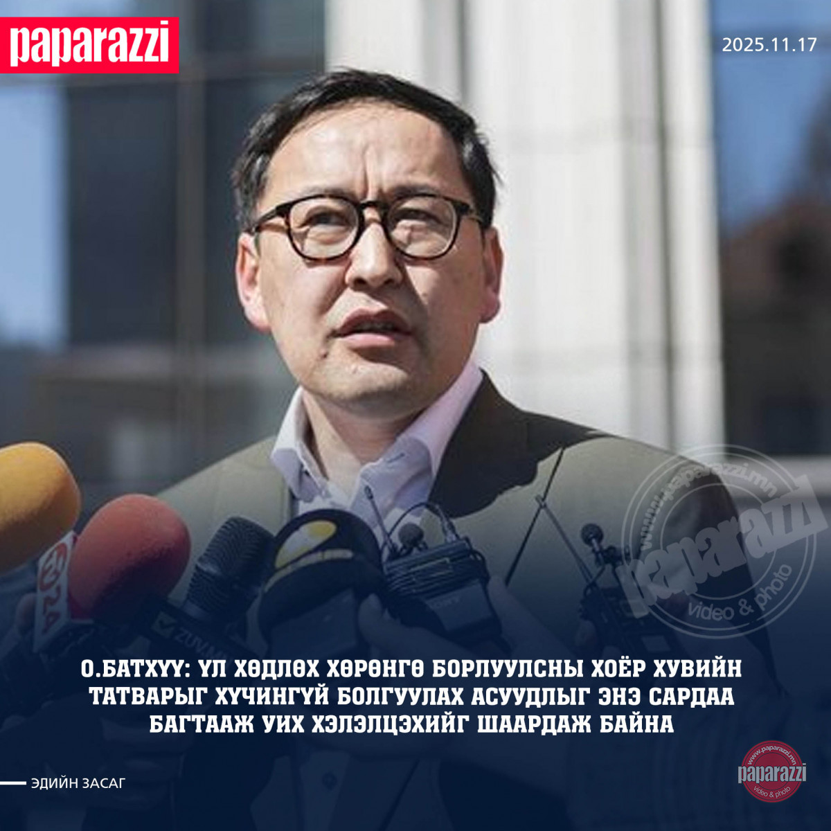 Энэ тухайгаа хуульч О.Батхүү "Үл хөдлөх хөрөнгө борлуулсны 2 хувийн татварыг хүчингүй болгох олон нийтийн өргөдлийг есдүгээр сарын 15-нд УИХ-аар хэлэлцэхээр болсон юм. УИХ-ын байнгын хороодоор хэлэлцэгдээд цааш явах ёстой байтал ерөөсөө хэлэлцэгдэхгүй байна. Өмнө нь олон нийтийн гаргаж байсан өргөдлүүдийн адил аваад дарчихлаа.