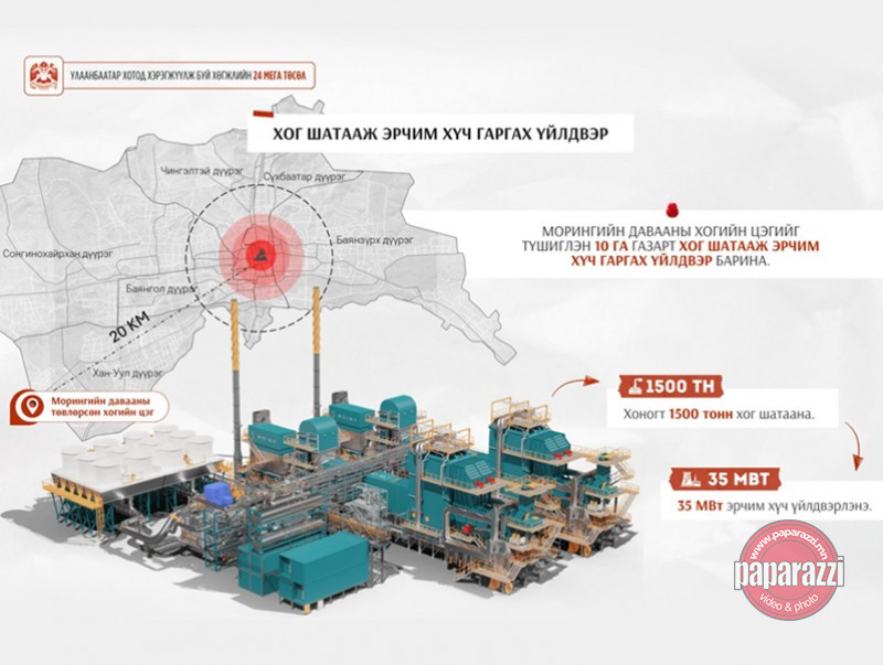Өдөрт 1500 тонн хог шатаах хүчин чадалтай үйлдвэрийг Хан-Уул дүүргийн 12 дугаар хороо, Морингийн даваанд 10 га газарт барих хөрөнгө оруулалтын хэмжээ 206.5 сая ам.доллар байх бөгөөд бүтээн байгуулалтыг 30 сарын хугацаанд гүйцэтгэж, 28 жилийн дараа төрд шилжүүлнэ. Тус үйлдвэр нь жилд 8000 цаг ажиллаж, 35 МВт хүчин чадал бүхий цахилгаан эрчим хүч түгээнэ.