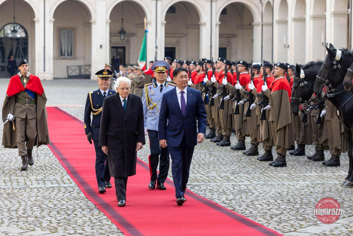 Монгол Улсын Ерөнхийлөгч У.Хүрэлсүхийг Бүгд Найрамдах Итали Улсын Ерөнхийлөгч Сэржо Маттарэлла албан ёсоор угтаж авлаа