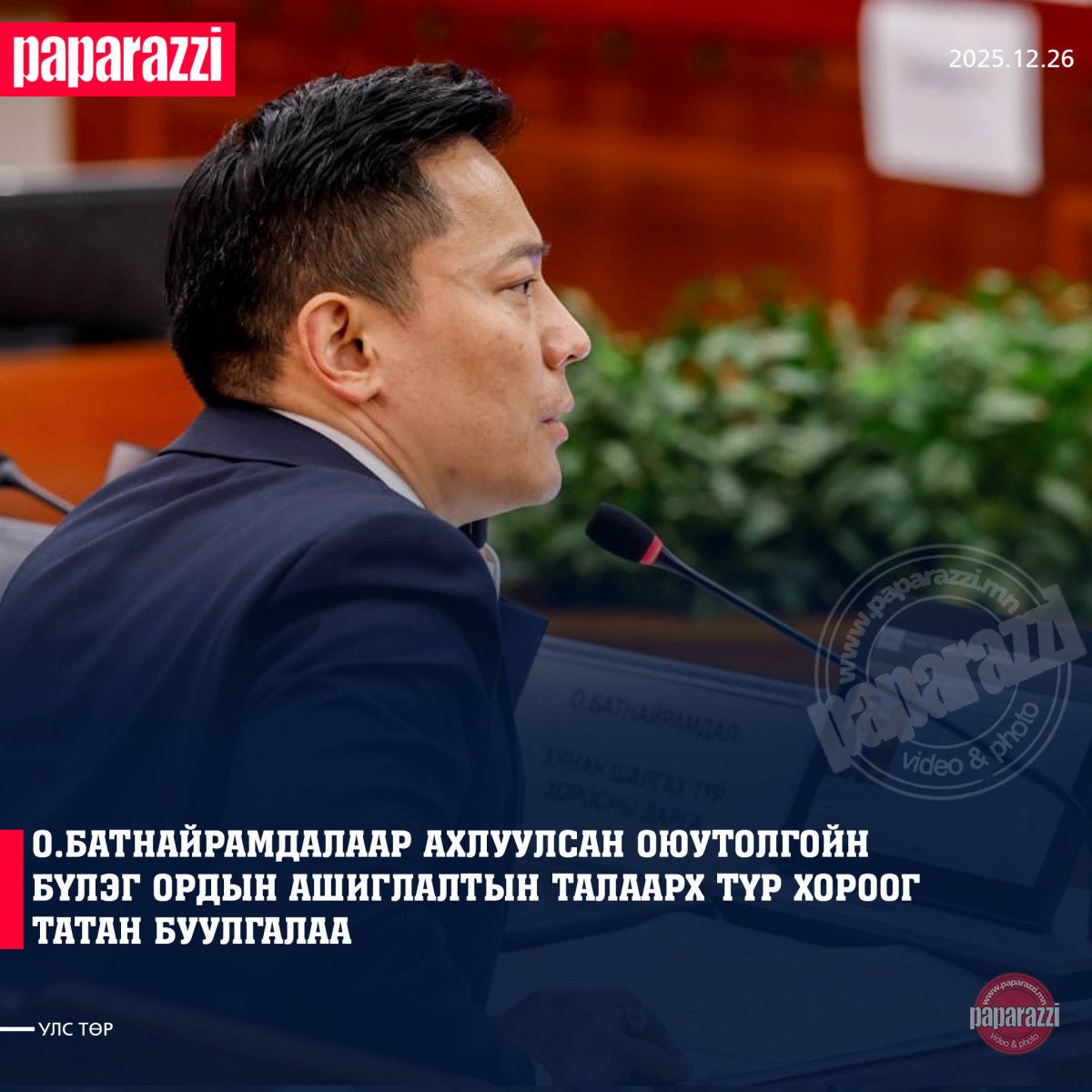 УИХ-ын чуулганы Баасан гарагийн хуралдаан үргэлжилж байна. Хуралдаанаар Оюутолгойн бүлэг ордын ашиглалтын талаарх хянан шалгах Түр хорооны тайлан дүгнэлтийг сонслоо. Ийнхүү чуулганаар Оюу толгой бүлэг ордын ашиглалтад Монгол Улсын эрх ашгийг хангуулах, хүртэх өгөөжийг нэмэгдүүлэх хүрээнд хийсэн тусгай шалгалт, нээлттэй сонсголын мөрөөр авч хэрэгжүүлэх арга хэмжээний тухай УИХ-ын тогтоолыг УИХ-ын гишүүдийн 81.2 хувь дэмжиж баталлаа. УИХ-ын тогтоол батлагдсантай холбоотойгоор УИХ-ын гишүүн О.Батнайрамдалаар ахлуулсан Оюутолгойн бүлэг ордын ашиглалтын талаарх хянан шалгах Түр хороог татан буугдсанд тооцлоо.