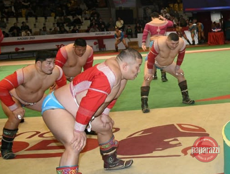 Аварга цолны хүндэтгэлийн барилдаанд зодоглох бөхчүүд