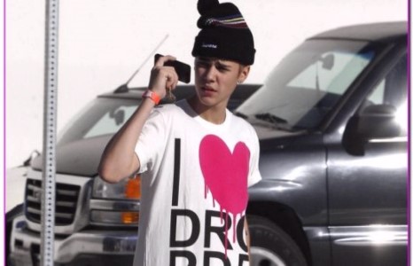 Жастин “Drop Dead Clothing” фирмийн нэг асар том цус урссан зүрхтэй майк өмссөн байсан бол түүний найз бүсгүй арваад ширхэг жижигхэн зүрх дүрсэлсэн сүлжмэл кофтоор гангарсан байжээ. Ганган хээнцэр хувцасны “Drop Dead Clothing” фирм нь Британийн металл рок хамтлагийн дуучин Оливер Сайксын эзэмшилд байдаг. Поп дуучны маань сонирхол металл рокийн мангасынхтай зарим талаараа давхацдаг нь эндээс харагдаж байна.