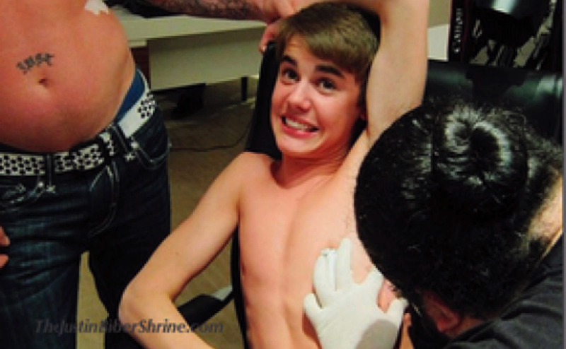 Залуу дуучны хувьд энэ шивээс долоо дахь нь гэнэ. Тэрбээр гурван сарын өмнө цээжин тус газраа титэм шивүүлсэн юм. Жастин Биберт үүнээс гадна Есүс Христийн дүр бүхий шивээс байдаг аж. Тэрбээр анх 16 настайдаа гуян дээрээ шувуу шивүүлж байжээ.