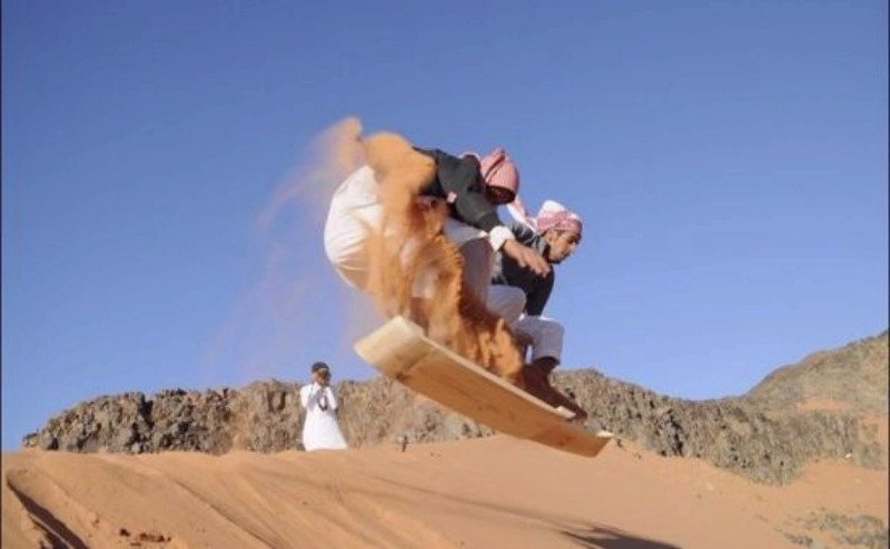 Нарлаг Саудын Арабд цас бараг л ордоггүй гэдгийг бүгд мэднэ. Жишээлбэл өнгөрсөн жил Арабд цас орсон боловч энэ нь 40 жилд ганц тохиолдсон аж. Гэсэн хэдий ч манай говьтой адил Араб улс элс ихтэй билээ. Арабын газар нутгийн бараг л талыг нь Руб-эль-Хали цөл эзэлдэг байна. Тиймээс Арабын спорт сонирхогчид элсэн дээгүүр, цасан дээгүүр гулгаж байгаа мэт гулгаж болно хэмээн үзсэн бөгөөд энэхүү шинэхэн спортын төрлөө сэндборд хэмээн нэрлэсэн байна. Ингээд Арабын залуучууд хэрхэн сэндбордоор гулгаж байгааг харцгаая.