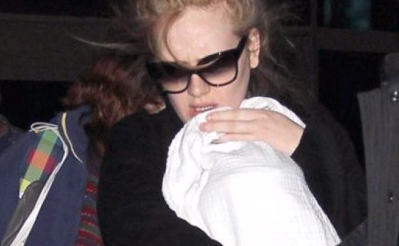 Адель нисэх онгоцны буудал руу явахдаа гурван сартай нялх үрээ олны нүднээс харамлан, энгэртээ тас тэвэрч, толгойг нь цагаан даавуугаар халхлан нуусан байжээ. Харин Адель хар нүдний шил зүүж, доошоо тонгойн нүүрээ нууж, бие хамгаалагчдаар хүрээлүүлсээр машиндаа суун явж одсон байна. Тэрбээр өдийг хүртэл хүүгийнхээ нэрийг олон нийтэд зарлаагүй, хүүгээ харуулахыг ч хүсэхгүй байгаа гэнэ.