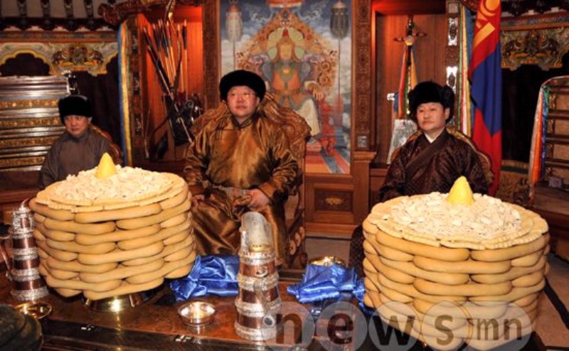 Билгийн тооллын XVII жарны “Тийн ялгуусан” хэмээх харагчин усан могой жилийн хаврын тэргүүн сарын шинийн нэгний өглөөний 08.00 цагт Монгол Улсын Ерөнхийлөгч Цахиагийн Элбэгдорж Монгол түмний сүлд хийморийн бэлгэдэл болсон Төрийн есөн хөлт цагаан туганд хүндэтгэл үзүүллээ.
