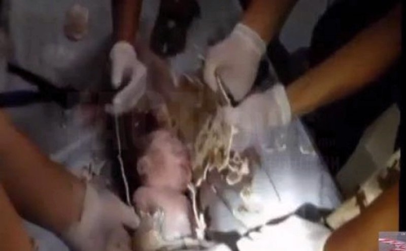 Ингээд аврах албаныхныг дуудсан байна. тэд хүүхдийн уйлах чимээг дагаж явсаар бохирын хоолой байдаг хэсэгт ирж нярайн гацсан хэсгийг тайран авч, тэрхүү хэсгээс гаргахад хүндрэлтэй байсан учраас эмнэлэгт хүргэж эмч нарын тусламжтайгаар хүүг гарган авчээ.