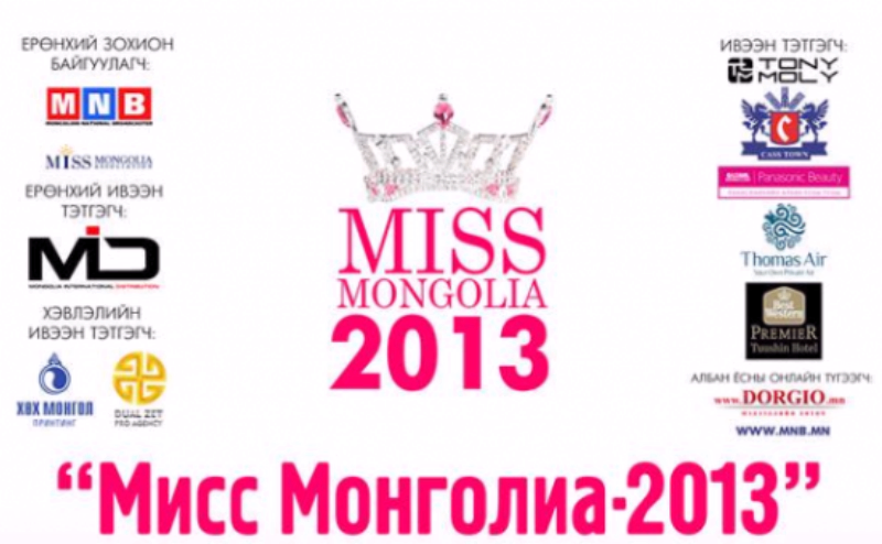 "Мисс монголиа" холбооноос санаачлан тэртээх 2004 оноос хойш тасралтгүй зохион байгуулж буй уг тэмцээнд Улаанбаатар, Дархан, Эрдэнэт, Завхан зэрэг аймаг хотуудаас нийт 70 гаруй охид бүртгүүлэн оролцсоноос анхан шатны шалгаруулалтаас шилдэг 23-н охин шалгаран үлдэж энэ жилийн тэргүүн миссийн төлөө өрсөлдөж эхэлсэн билээ. Тэрээр "Miss Mongolia 2013" тэмцээний Ерөнхий зохион байгуулагчаар “Мисс монголиа” холбоо, Монголын Үндэсний Олон Нийтийн Радио Телевиз ажиллаж байгаа бол Ерөнхий ивээн тэтгэгчээр “Mongolia International Distribution” LLС, Хэвлэлийн ивээн тэтгэгчээр “Хөх Монгол” принтинг, “DUEL ZET” pro agency, Албан ёсны онлайн түгээгчээр Монголын №1 хөтөч сайт www.DORGIO.mn, Ивээн тэтгэгчээр “Тоny Moly”, “Thomas Air”, “Panasonic Beauty”, “Cass town” нар ажиллаж байгаа юм.