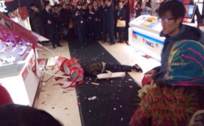 Хэдийгээр дэлгүүр хөл гишгэх зайгүй байсан ч Тао хэн нэгэн дээр унаагүй нь аз юм.