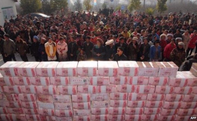 Хятадын Сычуань мужийн Жианше тосгонд мөнгөн дэвсгэртээр хоёр метр өндөр хана босгожээ. Энэ ханыг босгоход 13 сая юань буюу 2,1 сая ам.доллартай тэнцэхүйц хэмжээний мөнгө орсон байна. Гэхдээ мөнгөөр босгосон хана үүрд энэ хэвээр үлдэхгүй, зөвхөн тосгоны оршин суугчдад тарааж өгөх хүртэл байх ажээ.  Жианше тосгоныхон удахгүй болох цагаан сарын баяраар энэ ханыг хувааж, өөр өөрийн хувийг хүртэх юм.