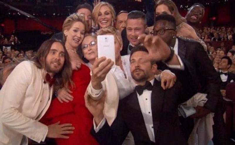 Шууд нэвтрүүлгээр хэдэн арван сая үзэгчдэд хүрсэн Оскарын ёслолын үеэр Эллен ододтой хамт селфи авахуулахдаа Твиттерийн рекордыг эвдэх эсэхээ харъя хэмээн уриалсан учир жиргээчид ч түүнийг идэвхтэй дэмжжээ. Эллен зургаа нийтлэхдээ "Брэдли Куперийн гар арай жаахан урт байсан бол хамгийн сайхан зураг болох байлаа" хэмээн бичсэн байв. Хөтлөгч Эллен ёслолын үеэр ододтой зургаа авахуулах болсон нь зүгээр ч нэг гэнэтийн санаа биш байжээ. Энэ бол Оскарыг ивээн тэтгэсэн "Samsung" компанийн реклам байсан бөгөөд 30 секунд үргэлжилсэн энэ рекламны төлөө 1,8 сая ам.доллар төлсөн гэнэ.