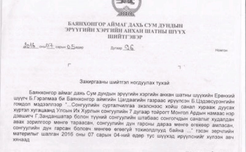 Тэгвэл Баянхонгор аймаг дахь Сум дундын эрүүгийн хэргийн анхан шатны шүүх дээрх асуудлаар хуралдаж, Л.Элдэв-Очирын сонгуулийн штабын ажилтан нь Сонгуулийн тухай хууль зөрчсөн болохыг тогтоожээ.