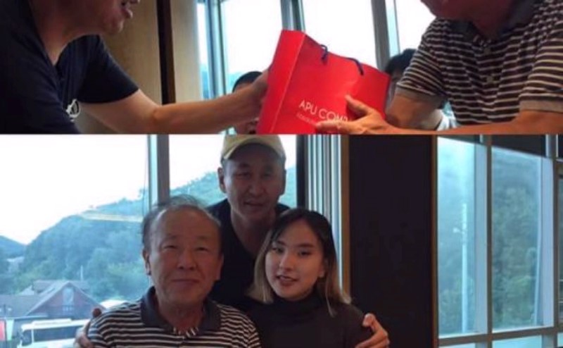 МУГЖ Д.Хүрэлхүү өөрийн бага охиныхоо хамтаар Солонгосын олон ангит цуврал киноны нэг болох бидний сайн мэдэх “Амьдралын ээдрээ” буюу “гурван марал од” киноны гол дүрийн Ким Ин Ха-гийн ахын дүрд тоглодог нэрт жүжигчинтэй ийн зургаа татуулжээ. Түүгээр ч барахгүй энх орныхоо нэрийн бүтээгдэхүүн болох “АПУ” компанийн бүтээгдэхүүний дээжээс бэлэг болгон өгчээ.