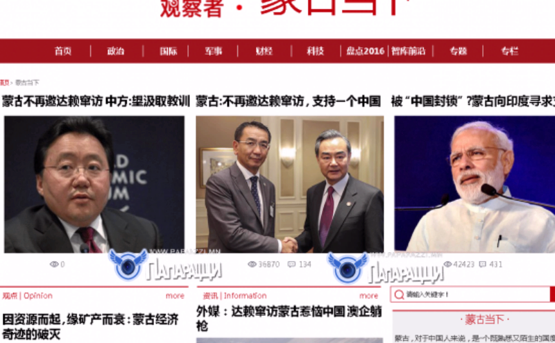 БНХАУ-д Монгол орны цаг төрийн байдал, нийгэм, улс төр, өдөр тутмын онцлох үйл явдлын талаар мэдээлдэг сайт нээгджээ. http://www.guancha.cn/MengGuDangXia хэмээх энэхүү сайтын нэр нь “Мэн ГуДан Шиа” буюу "Өнөөдрийн Монгол" гэсэн нэршилтэй юм байна. Ингэснээр БНХАУ-н ард иргэд өөрийн төрөлх хэл дээрээ манай орны аж байдлыг цаг алдалгүй мэдэх боломж бүрдэж байгаа ч нөгөө талаар энэ нээлттэй, илэн далангүй мэдээлэл харилцааны цаана хэн байгаа вэ гэдэг нь тодорхой болоогүй байна. Цаашлаад эл хэвлэл мэдээллийн хэрэгсэл нь улс орны аюулгүй байдалд ч заналхийлж болох юм.
