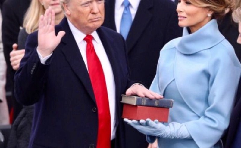 Шинэхэн Тэргүүн хатагтай нөхөр Дональд Трампыг тангараг өргөх үед хоёр Библийг барьж буй зургийг мөн твиттертээ нийтэлжээ.
