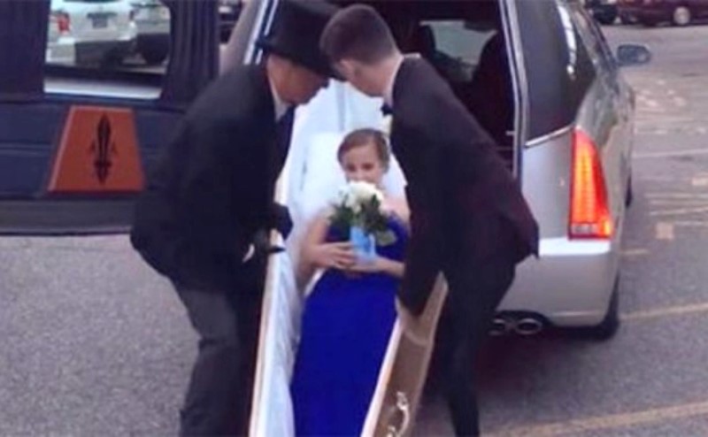 АНУ-ын Нью-Жерси мужийн 17 настай охин Хонхны баяртаа тун ч өвөрмөц байдлаар заларчээ. Тэрбээр авсан дотор хэвтээд буяны хөсгөөр ирсэн байна. Ийм аргаар Мэган Флагерти гэдэг бүсгүй төрөлх сургуультайгаа салах ёс гүйцэтгэсэн гэнэ.