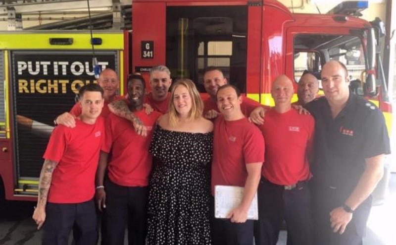 Лондон хотын баруун хэсэгт байрлах 24 давхар орон сууцанд гал гарсны улмаас 79 хүн амь үрэгдсэн харамсалтай хэрэг долоо хоногийн өмнө гарсан. Тус орон сууцанд гарсан галыг унтраахаар 200 гал сөнөөгч 24 цаг ажилласан юм. Лондонд төрж өссөн алдарт дуучин Адель эдгээр зоригт албан хаагчдад талархсанаа илэрхийлэх үүднээс Челсигийн Гал сөнөөх ангийн албан хаагчдад гэнэтийн бэлэг барьж, өөрийн биеэр ангид нь зочилжээ. Тус ангийн гал сөнөөгч Роб Петти фэйсбук хуудаснаа түүнтэй авахуулсан зургаа нийтлэн, “Сайхан сэтгэлтэй, гайхалтай даруу дуучин Адель Челсигийн Гал сөнөөх ангид бидэнтэй хамт цай ууж, талархсанаа илэрхийлэх гэж өдөр болгон ирэхгүй. Тэрээр Гренфелл Тауэрт гарсан галыг унтраахаар ажилласан Лондонгийн бүх гал сөнөөх ангиуд болон Түргэн тусламжийн алба, Лондон хотын цагдаагийн газарт талархсанаа илэрхийлсэн.” хэмээн бичжээ. Дуучин бүсгүй гал сөнөөгчдийн хамт амь үрэгдсэн иргэдийг дурсан, нэг минут дуугаа хурааж, эмгэнэл илэрхийлжээ.