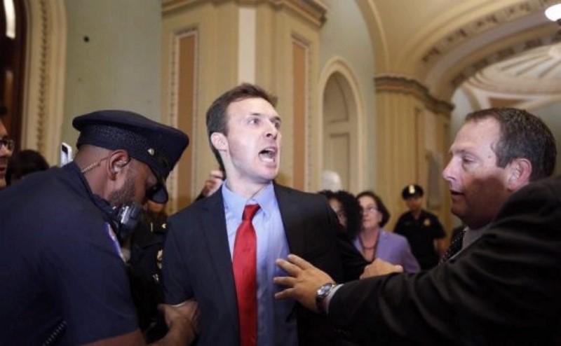 АНУ-ын Ерөнхийлөгч Доналд Трамп руу нэгэн идэвхтэн Оросын төрийн далбааг шиджээ. Райан Клэйтон гэх уг эр Трампыг Бүгд найрамдах намын сенаторуудтай өдрийн хоолонд орохоор явж байхад нь дээрх үйлдлээ хийж танхайрсан байна.