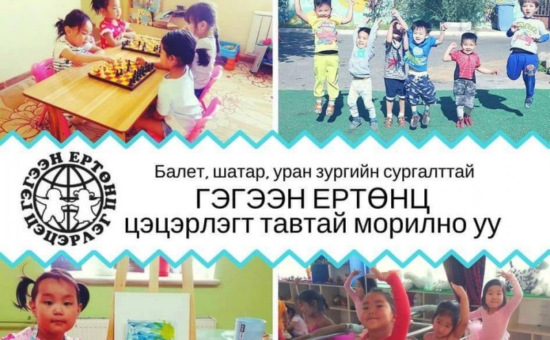 -Гар урлал зэрэг хичээлүүд орох юм.Хүүхэд нэг бүрийн хөгжлийн төлөө хамтдаа уриатай "ГЭГЭЭН ЕРТӨНЦ" цэцэрлэгийн үүд хаалга та бүхний өмнө үргэлж нээлттэй байх болно.
