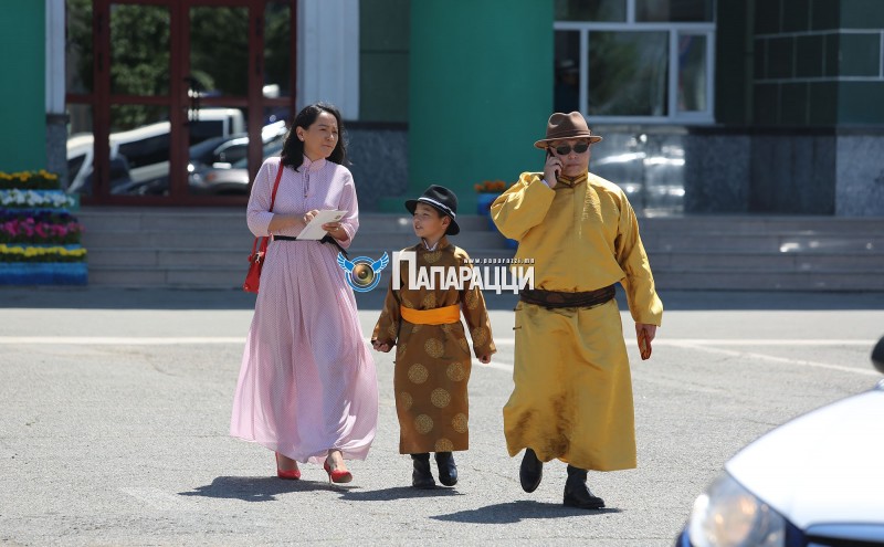 УИХ-ын гишүүн Х. Нямбаатар алтан шаргал дээлээр гоён эхнэр хүүгийн хамт үндэсний хувцсаараа ижилсэн ард түмэндээ гэр бүлээ танилцуулан утсаараа оролдон яваа нь дуранд өртөв.