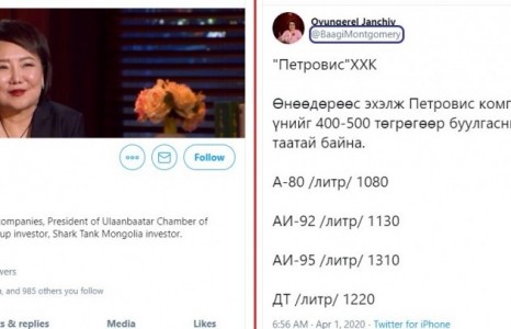 "Петровис"-ийн нэрийг ашиглан шатахууны үнэ 400-500 төгрөгөөр буурсан гэх хуурамч мэдээлэл цацжээ