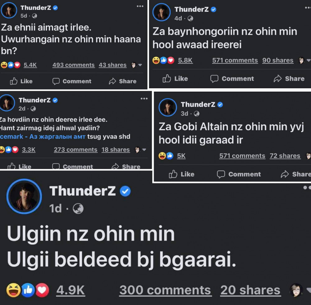 Сошиал ертөнцийн  реппер ThunderZ буюу н. Өлзий-Орших 21 аймагт найз охинтойгоо эхнээс нь зарлаад эхэлжээ. Фенүүдээ байнга хөгжөөж байдаг охидын зүрх зүсэгч маань  “Тоонот”-ынхонтойгоо 21 аймгийн аялан тоглолтоо  тун амжилттай үргэлжлүүлж байна.